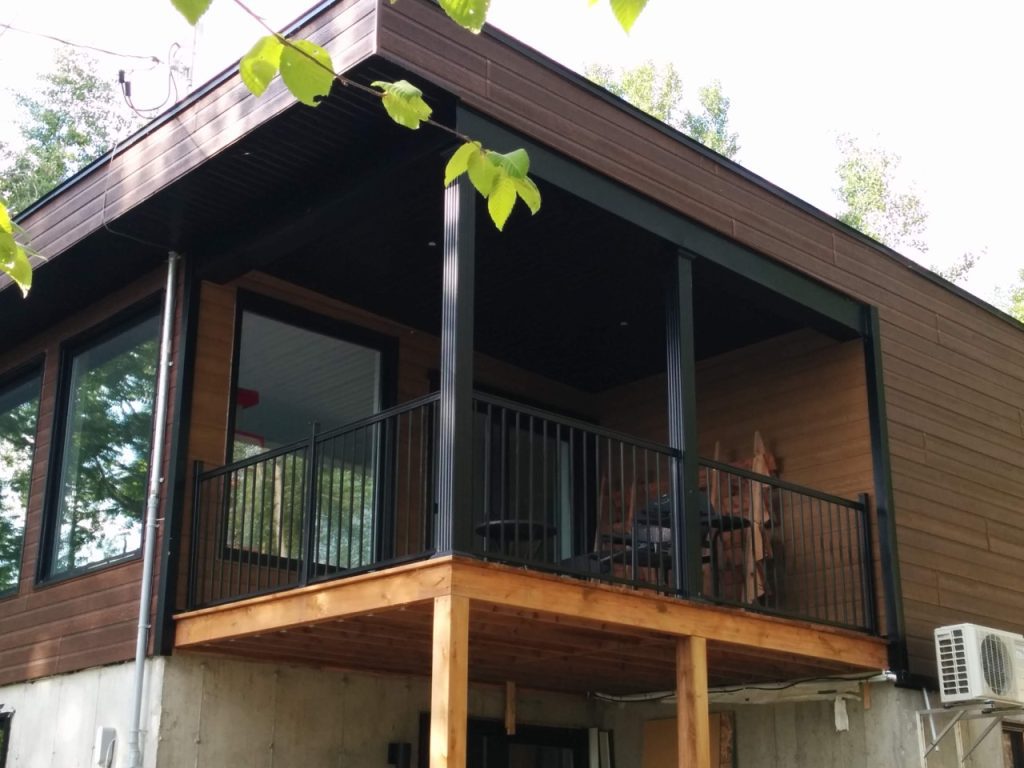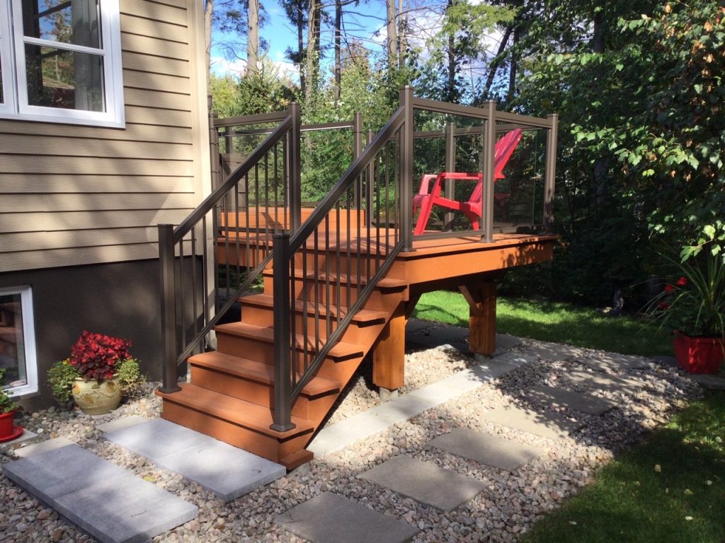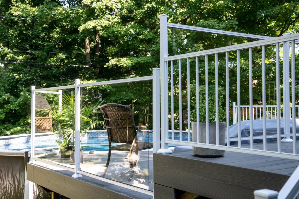 La rampe avec barrotins s’agence parfaitement à la rampe de verre trempé 6 mm avec structure en aluminium puisqu’elle est composée en majeure partie des mêmes composantes : main courante, poteau et quincaillerie. Il n’est donc pas rare, même plutôt fréquent, de mixer ces deux produits sur un même périmètre.