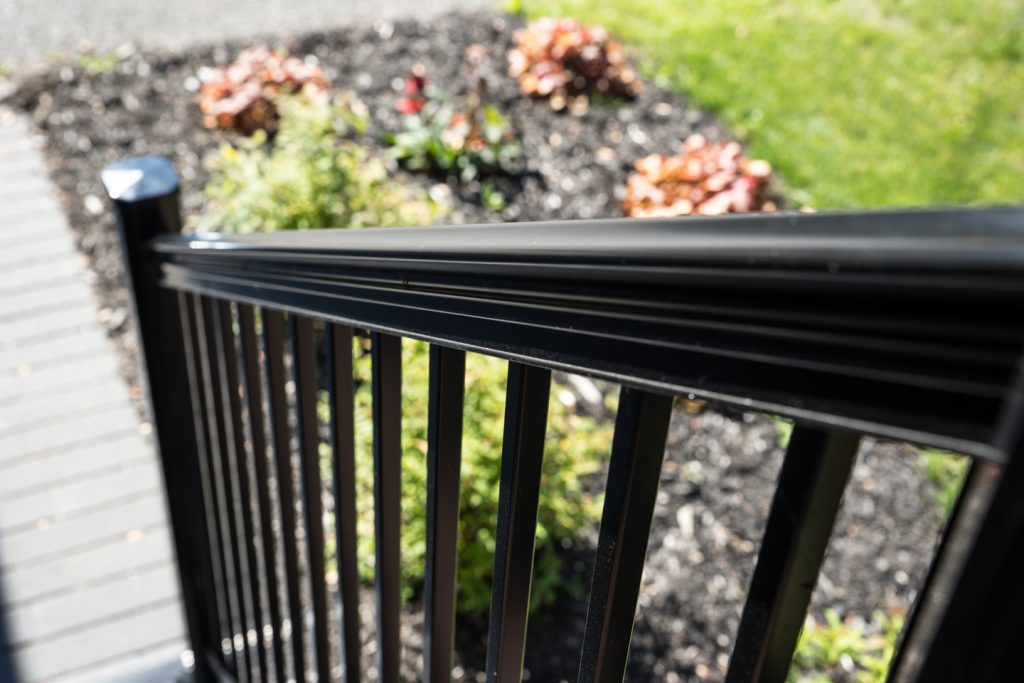 - Tous les éléments de la rampe en barrotins d’aluminium sont identiques mis à part le choix de la main courante. L’apparence des sections de rampe est uniforme des deux côtés du produit.
